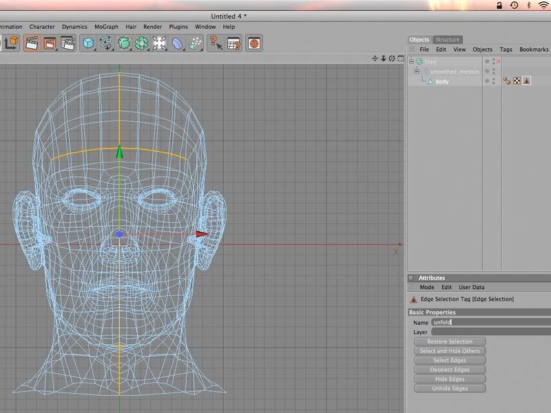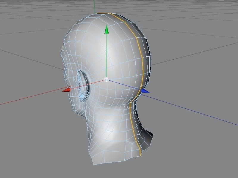 Com a Edge Slection, ou a Path Selection, crie uma linha da parte de tras da cabeça até a testa do nosso amigo.