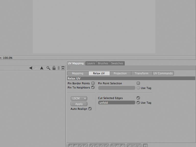 Clique agora em Relax UV, em Cut Selected Edges arraste nossa selection tag para o abaixo, ou digite o nome que vc escolheu, como na figura abaixo.